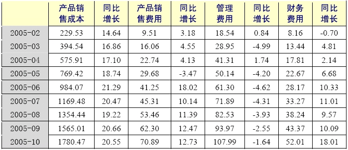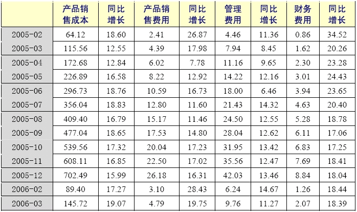 2006年,水泥制造業(yè)成本上漲壓力較大,行業(yè)成本增長(zhǎng)相對(duì)較快。由于銷售收入增速加快,銷售成本增速及費(fèi)用也相應(yīng)上升。 1季度,水泥制造業(yè)累計(jì)產(chǎn)品銷售成本為494.64億元,同比增長(zhǎng)29.85%,增幅比上年同期上升了近13個(gè)百分點(diǎn);累計(jì)產(chǎn)品銷售費(fèi)用為19.33億元,同比增長(zhǎng)21.37%,增幅比上年同期上升了16.82個(gè)百分點(diǎn);累計(jì)管理費(fèi)用為31.34億元,同比增長(zhǎng)10.98%;累計(jì)財(cái)務(wù)費(fèi)用為16.14億元,同比增長(zhǎng)23.16%。