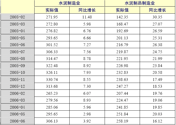從資金使用情況看,2006年1-6月,水泥制造業(yè)的資金使用狀況總體要好于水泥制品制造業(yè),水泥制品制造業(yè)應(yīng)收帳款凈額為258.19億元,同比增長16.12%,增幅高于水泥制造業(yè)12個百分點。 2季度末,水泥制造業(yè)應(yīng)收帳款增幅比上年同期下降了3.35個百分點,而水泥制品制造業(yè)應(yīng)收帳款增幅比上年同期下降了10.26個百分點,說明水泥制品制造業(yè)的資金使用狀況較上年有明顯改善。