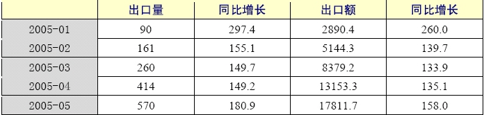 2006年1-6月,水泥出口延續(xù)2005年的良好態(tài)勢,繼續(xù)保持較高的增速。累計出口水泥1756萬噸,同比增長125.3%;出口額為56914.0萬美元,同比增長133.8%。