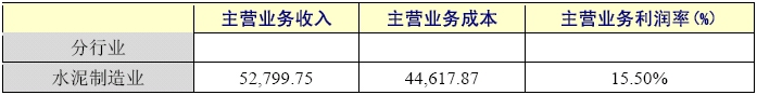 2006年1-9月萬(wàn)年青水泥主營(yíng)行業(yè)或產(chǎn)品情況