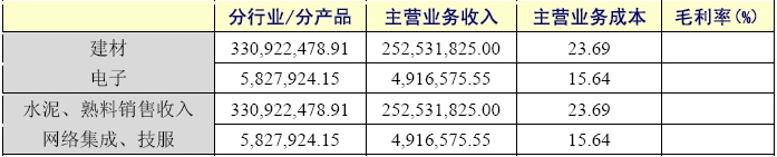 2006年三季度,內(nèi)蒙古西水創(chuàng)業(yè)股份有限公司所處的內(nèi)蒙古建材市場繼續(xù)回暖,但水泥銷售價格尚未回升到2004年的水平;與上季度相比,公司建材產(chǎn)品毛利率上升了1.29個百分點;在電子產(chǎn)品方面,受市場競爭加劇的影響,公司主營業(yè)務毛利率比前一報告期下降了30.15個百分點,但由于業(yè)務規(guī)模小,對公司利潤總額影響不大。