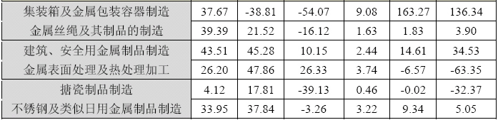 由于各子行業(yè)利潤增長情況普遍下滑,整個金屬制品制造業(yè)虧損增加。截止2006年四季度末,金屬制品業(yè)虧損企業(yè)虧損額為34.42億元,同比增長24.52%,增幅比上年同期上升19.57個百分點。其中,虧損企業(yè)虧損額增幅較大的子行業(yè)有集裝箱及金屬包裝容器制造、金屬工具制造、建筑、安全用金屬制品制造等三個行業(yè)。