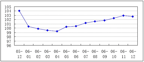 2006年四季度,金屬制品制造業(yè)的出廠價格指數(shù)出現(xiàn)平穩(wěn)上漲。其中,10、11、12月份,金屬制品制造業(yè)工業(yè)品出廠價格指數(shù)分別為102.3、102.9、102.7。從趨勢上看,四季度是金屬制品出廠價格反彈跡象明顯,價格拐點開始出現(xiàn)。
