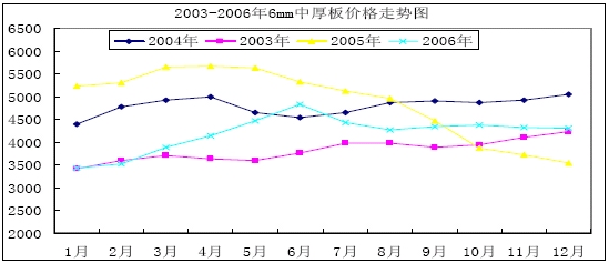 2003-2006年6mm中厚板價(jià)格走勢(shì)
