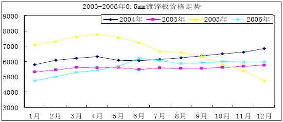 2003-2006年0.5mm鍍鋅版價(jià)格走勢