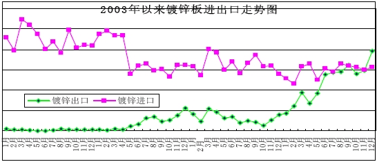 2003年以來鍍鋅版進(jìn)出口走勢圖