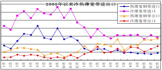 2005年以來(lái)冷熱薄寬帶進(jìn)出口走勢(shì)圖