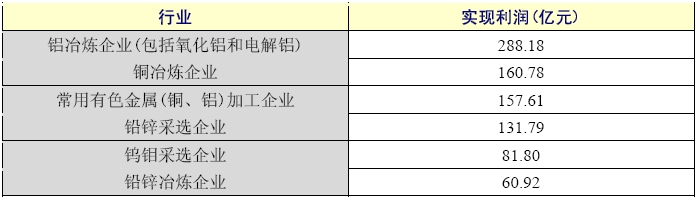 在各金屬品種中,實(shí)現(xiàn)利潤(rùn)超過(guò)30億元的行業(yè)小類依次是: