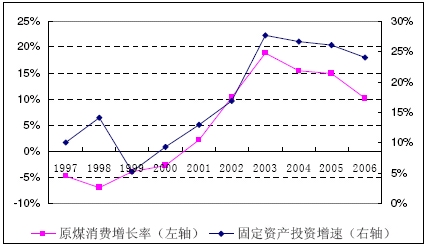 近十年原煤消費增速與全社會固定資產(chǎn)投資增速關(guān)系圖
