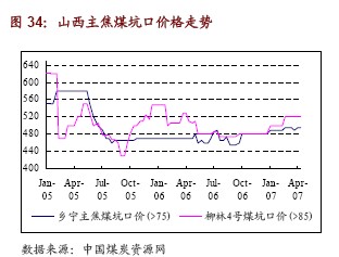 2007年3-4月山西主焦煤坑口價格小幅上漲