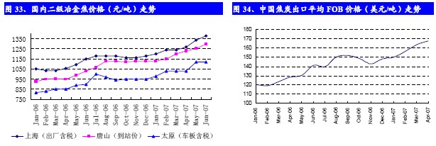 近期,由于上游原材料焦煤、肥煤的價格上漲,各省市焦化協(xié)會多次上調(diào)焦炭銷售指導(dǎo)價。為規(guī)范焦炭市場價格和競爭秩序,2007年4月在山西省成立全國焦炭聯(lián)盟,加入該聯(lián)盟的不僅有山西省焦化企業(yè),還有山東、河南、河北的許多企業(yè)。新成立的焦炭聯(lián)盟于5月份提高焦炭銷售指導(dǎo)價120-150元/噸,提價幅度超過10%,而此前1季度山西省已提價兩次,共提價80元/噸。受此影響,河北省的焦化協(xié)會也開始蘊量提價,而此前4月底河北省焦炭銷售指導(dǎo)價已經(jīng)上調(diào)30元/噸。