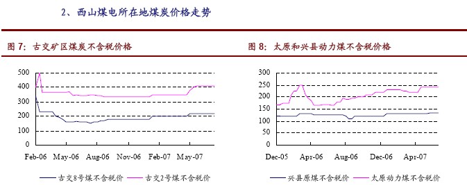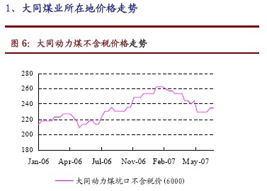 07上半年十大煤炭上市公司所在地煤價(jià)走勢(shì)(1):大同煤業(yè) 西山煤電