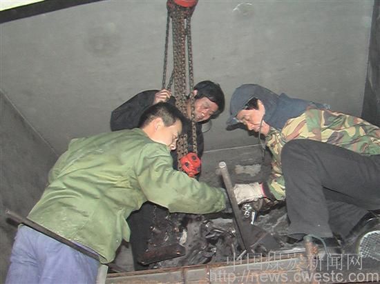 東方路小區(qū)職工在搶修供暖鍋爐提煤機 |