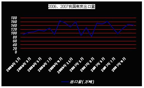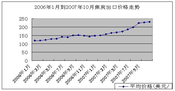 在焦炭出口的價(jià)格方面,從2006年以來(lái),焦炭的出口價(jià)格一直保持了穩(wěn)定的增長(zhǎng)勢(shì)頭。從下圖中可以看出,在近期,即2007年8月焦炭的價(jià)格有了一個(gè)比較大的提升,從前幾個(gè)月的幾美元、十幾煤炭的上漲幅度,激增到8月份二十多美元的上調(diào),而且在出口量上8月份也是我國(guó)出口大量增加的拐點(diǎn),這反映出國(guó)際市場(chǎng)對(duì)中國(guó)焦炭的依賴程度加深。