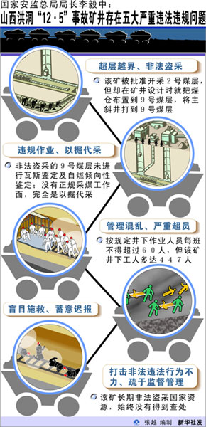 圖表:國家安監(jiān)總局局長李毅中:山西洪洞“12·5”事故礦井存在五大嚴重違法違規(guī)問題 新華社發(fā)