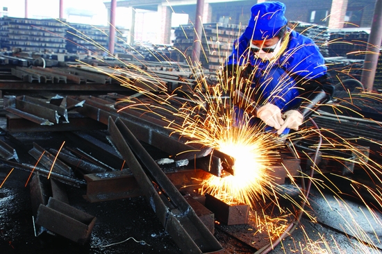 12月27日,安徽淮北市朱莊煤礦,一名工人正在焊接從百米井下回收上來的鋼材。2007年以來,朱莊煤礦積極開展回收復(fù)用、修舊利廢工作,組織礦工從百米井下回收廢舊的鋼材、設(shè)備等材料,通過維修加工后重新應(yīng)用于生產(chǎn)中去,全年累計(jì)完成產(chǎn)值400多萬元。(謝正義)