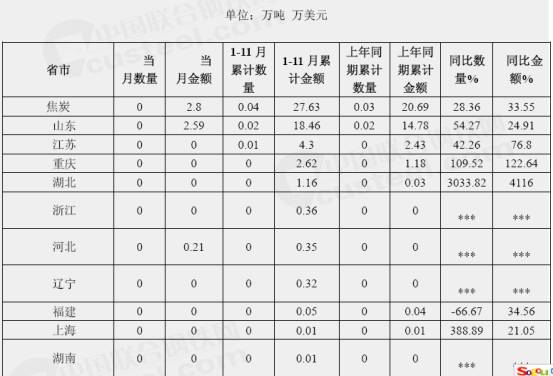 2007年11月份我國焦炭進口分省市數據統(tǒng)計