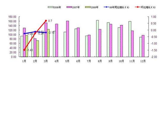 05年-08年3月份我國焦炭出口各月份增長對比