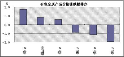 重點監(jiān)測的有色金屬品種中,1#銅、A00鋁、1#鉛價格分別較前一周上漲1.7%、0.8%和0.6%,1#鋅、1#鎳、1#錫價格分別較前一周下跌1.9%、1.1%和0.9%。