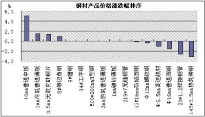 上周鋼材產品價格較前一周小幅上漲0.1%