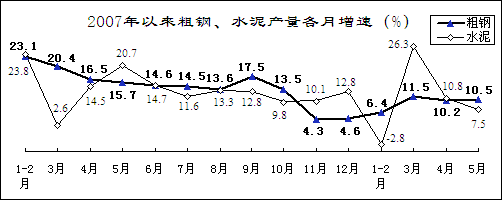 5月份,主要工業(yè)行業(yè)運(yùn)行態(tài)勢較好。能源生產(chǎn)供應(yīng)基本平穩(wěn),部分地區(qū)供需緊張狀況仍存在;冶金、有色、建材行業(yè)生產(chǎn)過快增長情況得到遏制;機(jī)械、電子行業(yè)繼續(xù)較快增長;紡織、輕工等行業(yè)出口增幅有所回升。前5個月,行業(yè)效益水平出現(xiàn)分化。煤炭行業(yè)利潤增長97.8%;冶金、建材、醫(yī)藥行業(yè)利潤增速超過40%;機(jī)械、電子和輕工行業(yè)利潤增幅27.1%-36.9%;有色、紡織行業(yè)分別增長9.2%和3.5%;電力、石化行業(yè)利潤下降。