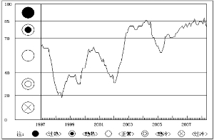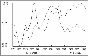 圖1 1997年以來先行與一致合成指數(shù)趨勢(shì)變動(dòng)圖
