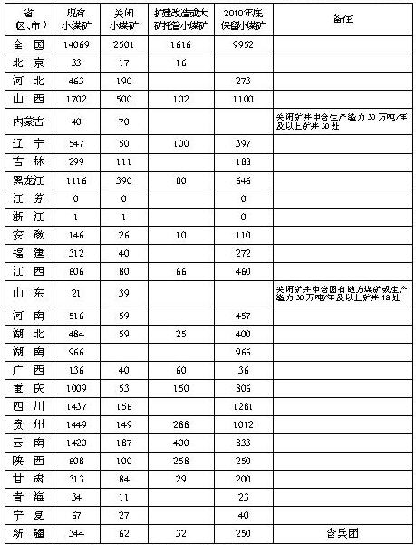 附件:有關(guān)省(區(qū)、市)“十一五”后三年關(guān)閉小煤礦計劃表