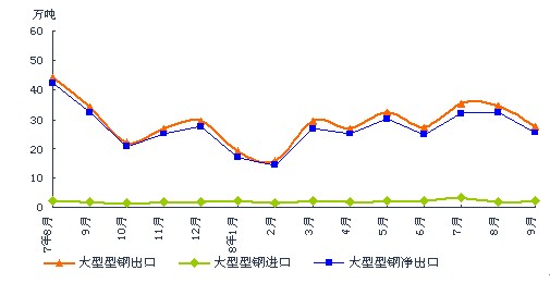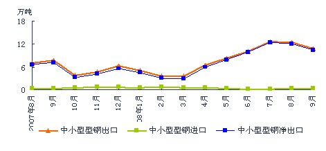 9月份國內(nèi)大中型型鋼出口量較8月份出口量出現(xiàn)下降的態(tài)勢,大型型鋼同比也有明顯的下降,而中小型型鋼出口量較去年同期有一定的增長。