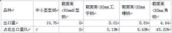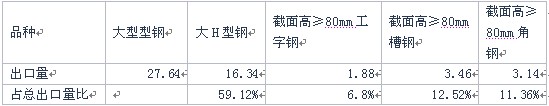 由表一可以看出,大規(guī)格H型鋼出口量依然占較大的比重,占大型型鋼出口量的一半以上,大規(guī)格槽鋼、角鋼出口量基本相當,工字鋼出口量相對較少。