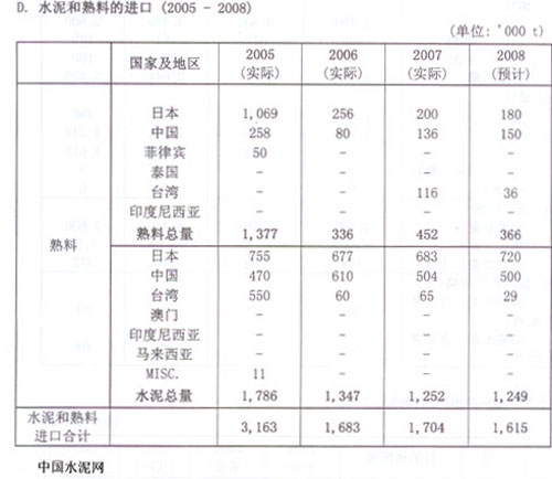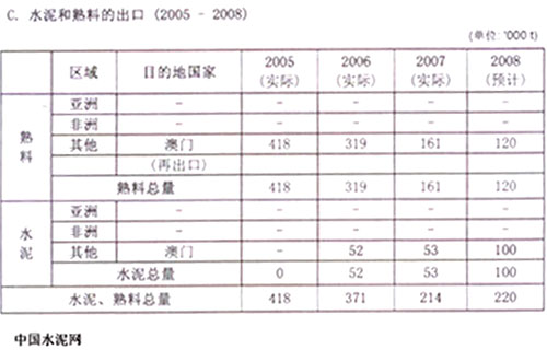 由于廣東省水泥市場漸好轉(zhuǎn),與及由人民幣匯率變動及取消出出口退稅所引致的出口成本增加,我們估計競爭情況應可緩和。雖然如此,業(yè)界仍面對高通脹與及高能源成本的問題。目前香港的袋裝及散裝水泥送到工地價格每噸約為500港元或64美元。