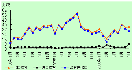 與焊管出口量繼續(xù)增長不同的是,9月份國內(nèi)鋼材出口量沖高回落,自8月份我國出口鋼材768萬噸創(chuàng)新高后,國內(nèi)關(guān)于加增關(guān)稅的傳言便甚囂塵上,與此同時,國際市場鋼材價格持續(xù)下跌,出口訂單隨金融危機(jī)影響擴(kuò)大而明顯減少,出口形勢也在悄然改變。不過,連續(xù)幾個月鋼材出口量維持在較高水平,也說明了國內(nèi)需求減弱使得鋼廠將更多的資源投放到了國際市場,這種過度依賴國際市場的發(fā)展顯然是不可取的。四季度,在全球鋼材需求萎縮的大背景下,國際幾大龍頭鋼廠相繼宣布減產(chǎn),幅度在15-30%之間,從這以形勢來看,后期國內(nèi)鋼材出口量將明顯下滑,焊管行情在需求減弱、貿(mào)易摩擦的雙重打壓下,更是處境艱難。