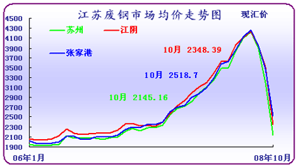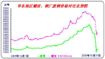10月份國內(nèi)廢鋼市場如筆者預(yù)期,大幅度走低,國內(nèi)四大區(qū)域(華東、華中、華北、東北)廢鋼市場均價(jià)從月初的3350元/噸下滑到月底的1800元/噸,下滑幅度達(dá)到46.3%,成交量也大幅度縮水。寶鋼、沙鋼、鞍鋼等各地區(qū)代表性鋼廠對(duì)11月份廢鋼采購計(jì)劃非限則停,庫存用量基本超過三個(gè)月。
