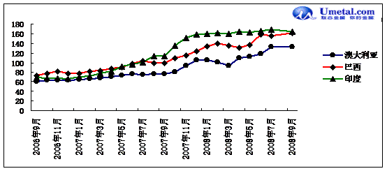 2008年9月進口鐵礦石分國別統(tǒng)計: