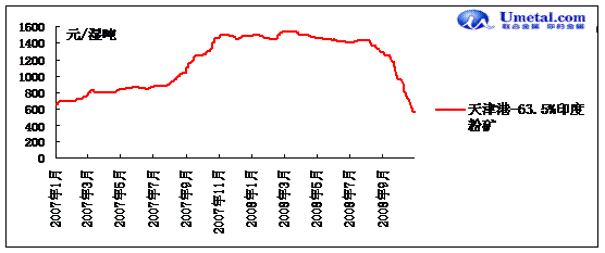 到本月底,馬鞍山地區(qū)64%鐵精粉市場價格為640元/噸(干基,含稅),與8月底的1550元/噸(干基,含稅)相比,累計降幅為910元/噸。該地區(qū)小部分貿(mào)易商感覺如今的市場價格快接近底線,開始低價囤貨,并且近期幾家規(guī)模較大的選廠已恢復生產(chǎn),但其他供貨商還處在觀望之中,有待市場的進一步變化。近期華東地區(qū)鐵精粉市場開始有走穩(wěn)趨勢,且開始有部分供商對后市較為看好,10月底澳大利亞長協(xié)礦62%PB粉到岸價格折算成人民幣,干基含稅價為725元/噸,而淄博地區(qū)65%鐵精粉市場價格為650元/噸(干基,含稅),價格明顯低于長協(xié)礦,加之大部分鋼廠國內(nèi)鐵精粉庫存普遍很低,預計后期國內(nèi)鐵精粉采購會有一定程度的恢復。