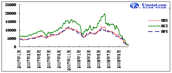 由于鋼鐵企業(yè)紛紛限產(chǎn),鐵礦石需求萎靡不振,沿海港口現(xiàn)貨礦市場依舊清淡,鐵礦石庫存難以消化。受市場整體需求下滑,運力過剩,運量嚴重不足的影響,鐵礦石運價全線飄綠。10月29日,金屬礦石貨種指數(shù)報1370.18點,同比下跌12.1%。