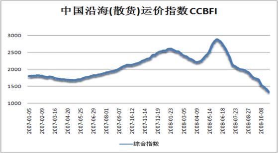 10月中國沿海航運市場持續(xù)走低,10月8日上海航運交易所發(fā)布的沿海(散貨)綜合運價指數(shù)報1553.99點,10月29日報收于1341.81點,下跌了13.7%,環(huán)比下跌了21%,同比下跌了39.4%。