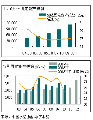 受宏觀經(jīng)濟(jì)環(huán)境變動(dòng)影響,今年1~10月全國(guó)累計(jì)完成投資23917.71 億元,同比增長(zhǎng)24.62%,較2007年同期的31.40%的增速有較大回落,基本與2006年同期持平。