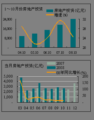 各省市情況:1~10月份,全國(guó)大部分地區(qū)累積房地產(chǎn)投資同比增速在平均水平以上,但房地產(chǎn)投資大省已經(jīng)出現(xiàn)回落,如房地產(chǎn)投資仍居全國(guó)房地產(chǎn)投資額首位的江蘇省,但從1~10月份累積投資額增速看,僅居全國(guó)中等水平,10月份當(dāng)月房地產(chǎn)投資仍保持正增長(zhǎng),是全國(guó)僅有的8個(gè)環(huán)比投資增加的省市之一;北京受奧運(yùn)會(huì)影響,1~10月份的房地產(chǎn)累積投資額為全國(guó)同比唯一負(fù)增長(zhǎng)的地區(qū),10月份的房地產(chǎn)投資額環(huán)比增加了59.72%。