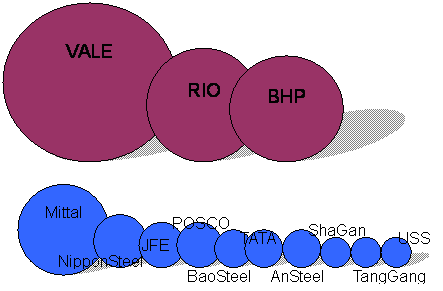 還應(yīng)該明確的是,即使鐵礦石市場(chǎng)供大于求,價(jià)格預(yù)期下跌的情況下,礦價(jià)談判仍然是力量不均等的。2007年三大礦山公司壟斷了全球77%的海運(yùn)鐵礦石貿(mào)易量,而世界最大的鋼廠MITTAL產(chǎn)量只占全球8.6%,第二位的NipponSteel則僅占2.6%,前20位的鋼廠產(chǎn)量合計(jì)也不過(guò)占全球的37%。