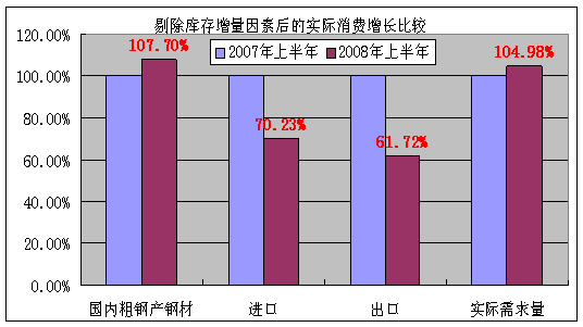 。▓D1、2)2008年上半年,已經(jīng)出現(xiàn)許多影響國內(nèi)不銹鋼需求的因素,但由于國內(nèi)經(jīng)濟(jì)總體上快速增長,上半年,國內(nèi)不銹鋼表觀消費同比增長率8.50%,與上年增長幅度10%-15%之間相比,增長速度有所放緩,但仍然表現(xiàn)出較高的水平,但是增長速度放緩,考慮市場和鋼廠庫存增長因素,實際需求增速仍保持5%左右增長速度。上半年實際需求增長幅度下降趨勢比表觀消費增長放緩嚴(yán)重;不銹鋼增長速度明顯放緩的根本原因是宏觀經(jīng)濟(jì)增長放緩;對國內(nèi)不銹鋼產(chǎn)業(yè)造成超過國內(nèi)消費放緩水平壓力的主要原因是世界經(jīng)濟(jì)不好;國家進(jìn)出口貿(mào)易政策變化加劇了國內(nèi)不銹鋼產(chǎn)業(yè)面臨的困難。特別是國家關(guān)于不銹鋼深加工制品出口貿(mào)易政策的變化,造成了不銹鋼冷軋寬板進(jìn)口數(shù)量的逆市上升。