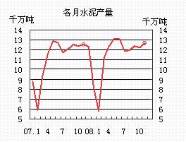 1-11月累計銷售水泥123347萬噸,月末庫存6299萬噸。水泥累計產(chǎn)銷率97.90%,比去年同期下降0.25個百分點(diǎn)。