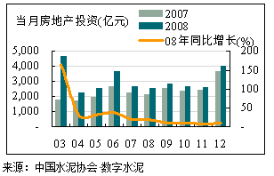 城鎮(zhèn)固定資產(chǎn)投資單月投資額增速繼續(xù)下滑,但總量首次突破20,000億元。在中央新增投資1000億元的情況下,2008年12月完成城鎮(zhèn)固定資產(chǎn)投資20,553.11億元,首次單月突破20,000億元,同比增長22.27%,增速為今年各月最低,較11月又低了1.5個百分點,投資增速連續(xù)三個月同比下降。