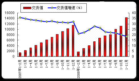 2008年,中國機械行業(yè)生產(chǎn)和出口增速明顯放緩,增加值同比增長17.1%,增幅同比回落7個百分點,出口交貨值增幅回落15.2個百分點。 國家發(fā)改委網(wǎng)站2月3日發(fā)布2008年主要工業(yè)行業(yè)運行情況顯示,2008年,機械行業(yè)增加值比07年增長17.1%,增幅同比回落7個百分點。出口交貨值14,297億元,增長18.4%,回落15.2個百分點。 主要產(chǎn)品中,汽車產(chǎn)量961.5萬輛,增長6.5%,回落16.4個百分點;其中轎車產(chǎn)量532.8萬輛,增長7.8%,回落17.2個百分點。發(fā)電設(shè)備產(chǎn)量13,343萬千瓦,增長2.1%,回落9.1個百分點,其中汽輪發(fā)電機產(chǎn)量增長5.8%。水輪發(fā)電機產(chǎn)量下降16%。民用鋼質(zhì)船舶、環(huán)保設(shè)備、大中型拖拉機產(chǎn)量分別增長44.2%、26.3%和12.8%。水泥設(shè)備、冶煉設(shè)備、石化設(shè)備、礦山設(shè)備、金屬軋制設(shè)備等產(chǎn)量增長17.1%-33.6%。 1-11月,機械行業(yè)累計實現(xiàn)利潤4,752億元,同比增長16.2%,增幅同比回落33.8個百分點。其中,汽車行業(yè)實現(xiàn)利潤1,239億元,增長8.7%,回落55.3個百分點。如圖8、9、10.