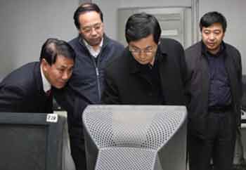 2月4日下午,孫華山現(xiàn)場(chǎng)觀看煤礦“三項(xiàng)崗位人員”計(jì)算機(jī)化考試系統(tǒng)使用情況。