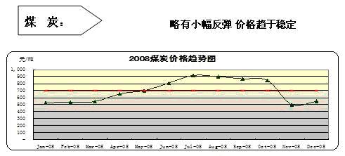 優(yōu)混煤平倉(cāng)價(jià)如上圖,我們可以清晰的看見一條拋物線式的價(jià)格軌跡,受國(guó)際金融危機(jī)的影響,作為上游產(chǎn)業(yè)的煤炭電力行業(yè)需求量下降,價(jià)格下降,效益受損。預(yù)計(jì)到今年下半年前總體情況均不會(huì)改變,但是近期出現(xiàn)的小幅價(jià)格回調(diào)預(yù)示著今年煤炭?jī)r(jià)格的穩(wěn)定,應(yīng)該不會(huì)持續(xù)下跌。