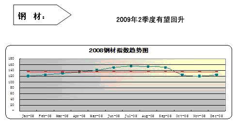 中國(guó)鋼鐵的價(jià)格指數(shù)如上圖,奧運(yùn)前持續(xù)上漲,奧運(yùn)過后又雪崩式下跌,同樣的迅速,同樣的非理性。至12月由于政府政策扶持,價(jià)格指數(shù)又呈小幅度回升。鐵礦石談判期間,其價(jià)格漲幅是鋼鐵價(jià)格上漲的主要原因。從4月開始,由于奧運(yùn)眾多鋼鐵消費(fèi)行業(yè)迫于環(huán)保壓力停產(chǎn),后又遇見全球金融風(fēng)暴,使得鋼鐵需求減少,鐵礦石明顯供大于求。這些都使得鋼材價(jià)格跳水。不過近期,寶鋼上調(diào)了2009年2月的鋼價(jià)。可以預(yù)計(jì)鋼材2009年一季度低價(jià)位震蕩運(yùn)行,二季度回升至合理價(jià)位運(yùn)行,下半年市場(chǎng)形勢(shì)總體要好于上半年。