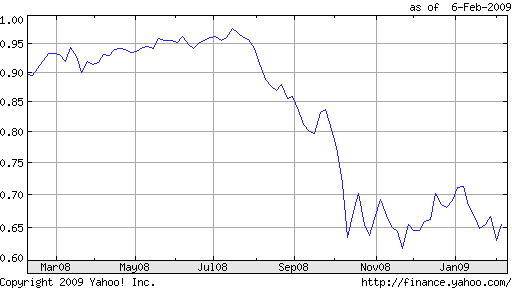 巴西礦山公司也存在同樣的問題,2008年的大部分時間里,巴西貨幣Real對美金的匯率保持在0.6以上,而經(jīng)歷了2008年9月至10月的大幅下滑后,一直保持在0.4左右,這一期間的跌幅為33%,與澳元跌幅基本相同。