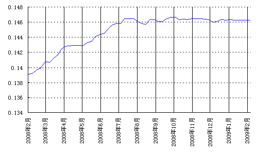 中國出口正在連續(xù)下滑,中國政府一直反復(fù)表示希望保持人民幣匯率穩(wěn)定,并在對人民幣匯率的市場管理中將其付諸實(shí)施,其中包括每日美元兌人民幣中間價(jià)的設(shè)定。注意到,過去半年多的時間內(nèi),人民幣兌美元匯率則停止了升值勢頭,一直保持在0.146的匯率左右徘徊。