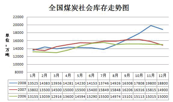 2008年全國(guó)煤炭社會(huì)庫(kù)存走勢(shì)統(tǒng)計(jì)