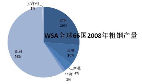 根據(jù)WSA公布的統(tǒng)計數(shù)字,亞洲地區(qū)無疑是全球最重要的粗鋼產(chǎn)地,它的產(chǎn)量幾乎占全球產(chǎn)量的6成。其次是歐洲占四分之一強(qiáng),中北美占10%,三大地區(qū)粗鋼產(chǎn)量占全球產(chǎn)量的94%。2008年全球66個國家累計生產(chǎn)粗鋼13.3億噸,同比減少1.1%。其中,歐洲粗鋼產(chǎn)量同比降低了5.8%,北美及中美地區(qū)產(chǎn)量同比降低了5.6%,亞洲地區(qū)降低了0.7。非洲大幅降低了9.4%,大洋洲下降了3.7%,南美下降了1.4%。
